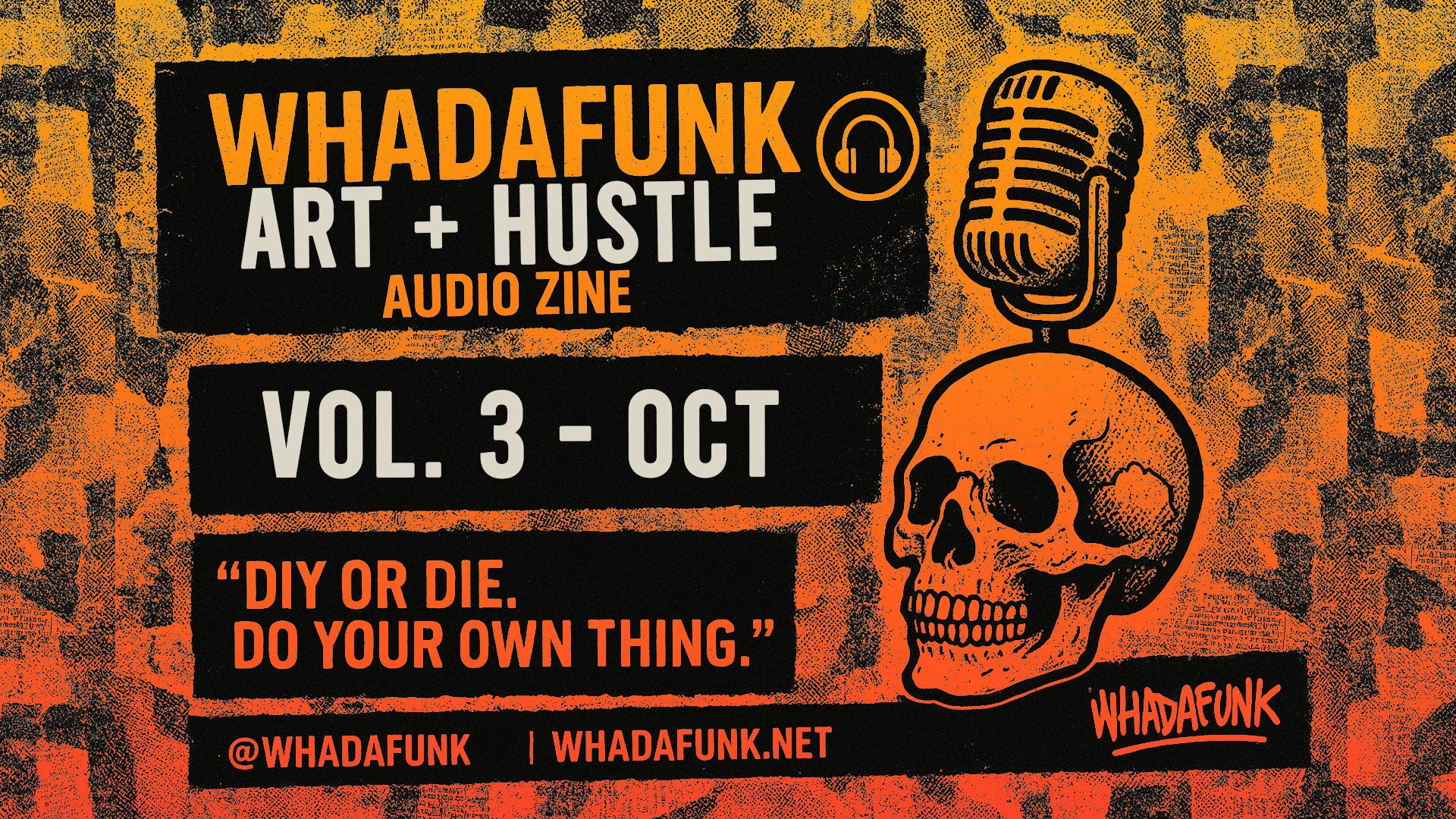 This month's exclusive WHADAFUNK Art & Hustle audio zine - available to all members. Listen on YouTube. Tune in, see what's up, get inspired and be real. Each month has a new episode.